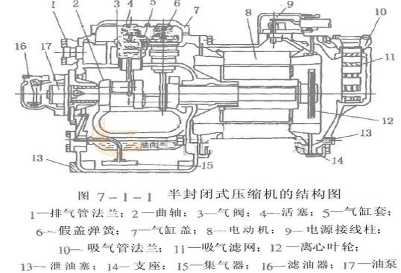 各類活塞式制冷壓縮機的拆卸工藝雖然基本相似,但由于結構不同,所以拆卸的步驟和要求也略有不同,應根據各類壓縮機的特點制訂不同的拆卸方法,下面以半封閉制冷壓縮機為例說明這種類型的制冷壓縮機拆卸方法和步驟。