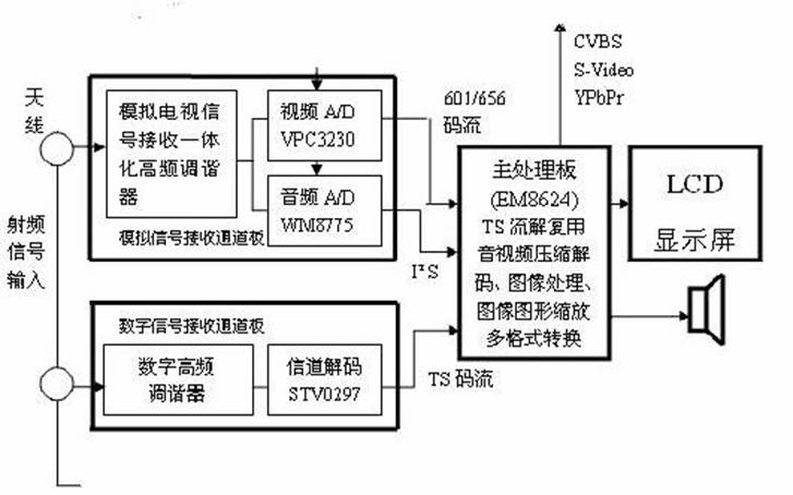 l 模塊B: 模擬A/D變換處理板(接收模擬RF,CVBS,SVIDEO,Y/Cr/Cb,AUDIO-in信號,并做A/D變換,輸出ITU601/656視頻信號以及I2S的聲音數據)