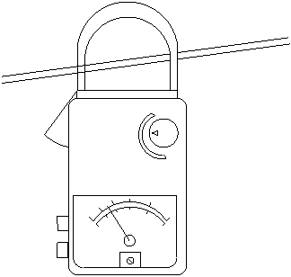 (2)測量電流時旋轉開關只要握緊貼心開關(扳手),使鉗形鐵心張口(圖中虛線所示)讓被測的載流導線卡在鉗口中間,然后放開扳手,使鉗形鐵心閉合,則鉗形電流表的指針便會指出導線中電流值。