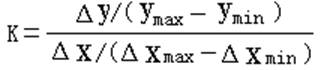 ΔX/(Xmax-Xmin)=4/(20-4)=0.25