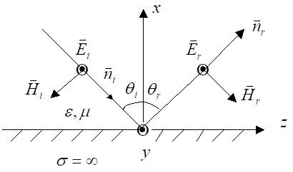 式中的反射系數GL,既可以根據理想導體表面的邊界條件,令h2=0得到 GL=-1,所以Ero=-Ei0,于是