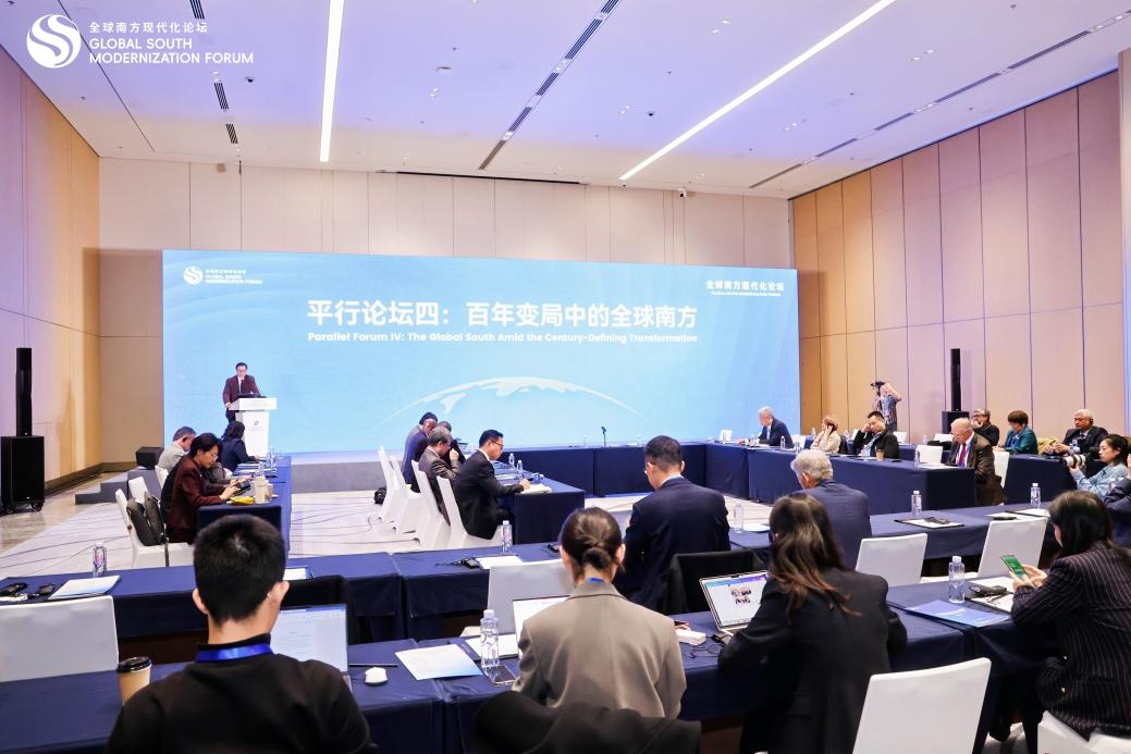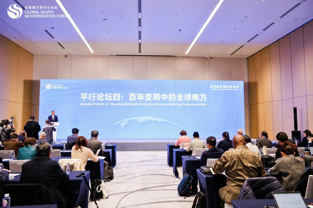 11月21日,全球南方現(xiàn)代化論壇在北京國(guó)家會(huì)議中心舉行。中共中央政治局委員、中宣部部長(zhǎng)李書(shū)磊出席主論壇并致辭。論壇由國(guó)務(wù)院新聞辦公室、中共中央黨校(國(guó)家行政學(xué)院)、中國(guó)社科院、北京大學(xué)主辦,主題為“攜手邁向現(xiàn)代化:共同愿景與發(fā)展之路”。論壇發(fā)布了《世界現(xiàn)代化發(fā)展報(bào)告》《中國(guó)式現(xiàn)代化發(fā)展報(bào)告》,頒發(fā)“全球發(fā)展研究與實(shí)踐獎(jiǎng)”,發(fā)起全球南方現(xiàn)代化研究學(xué)術(shù)網(wǎng)絡(luò)。當(dāng)日下午,全球南方現(xiàn)代化論壇平行論壇四“百年變局中的全球南方”舉行。本平行論壇由北京大學(xué)主辦,中國(guó)國(guó)際問(wèn)題研究院、北京外國(guó)語(yǔ)大學(xué)聯(lián)合協(xié)辦,匯聚了來(lái)自全球15個(gè)國(guó)家的近50位知名專家學(xué)者,圍繞全球南方國(guó)家在百年變局背景下的發(fā)展路徑與現(xiàn)代化實(shí)踐展開(kāi)深入交流。