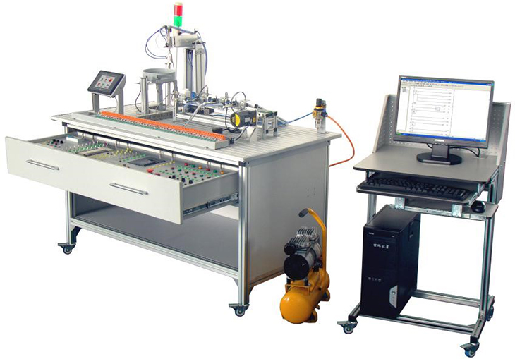 光機電一體化實訓設備由一些典型機械部件和電氣控制部件組成,有PLC模塊、輸入按鈕模塊、電源模塊、變頻器模塊、接線面板模塊、機械部件模塊……等工作站構成,是一個以現代工業現設備為原型的機電一體化生產線實訓考核裝置。整體結構臺用拆裝開放式,用于電氣線路搭接、機械部件組裝等實訓科目,可對現有的機械部件進行組裝不相同的生產流程,也可對設備添加其它模塊進行擴展,模塊采用標準化接口具有很好的互換性,能夠靈活的適應各種教學要求。