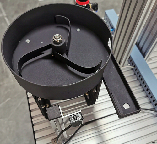 放料轉盤:轉盤中共放三種物料,一種金屬物料、一種黑色塑料物料、一種白色塑料物料。