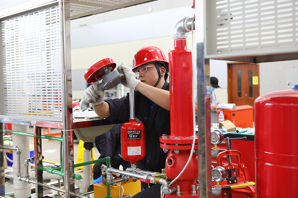 據(jù)悉,此次賽項(xiàng)包括建筑生活熱水系統(tǒng)、生活冷水系統(tǒng)、消防給水系統(tǒng)、排水系統(tǒng)等項(xiàng)目真實(shí)工作場(chǎng)景,考察選手系統(tǒng)圖繪制、材料清單編制、施工方案編制及管材安裝與質(zhì)量檢查,電氣接線(xiàn)、系統(tǒng)調(diào)試、故障診斷等知識(shí)與技能。加工管材、通水試壓、電氣安裝、系統(tǒng)調(diào)試……一批年輕的“技能達(dá)人”在賽場(chǎng)上忙得不亦樂(lè)乎。“建筑設(shè)備安裝與調(diào)控(給排水)”賽項(xiàng)與百姓生活息息相關(guān),涉及智能家居、智能住宅、生活排水等領(lǐng)域。比賽現(xiàn)場(chǎng)選手們兩人一組,分別負(fù)責(zé)水路和電路,不僅要懂得設(shè)備的安裝調(diào)試,還要學(xué)會(huì)編程,在規(guī)定的比賽時(shí)間內(nèi),合作完成生活給水、消防給水、熱水給水、排水、給排水自動(dòng)控制和衛(wèi)浴等6個(gè)系統(tǒng)30多道工序,最終完成給排水的設(shè)計(jì)安裝調(diào)試,同時(shí)比賽項(xiàng)目中還增加了故障排除,需要參賽選手去發(fā)現(xiàn),解決實(shí)際工作中的問(wèn)題。
