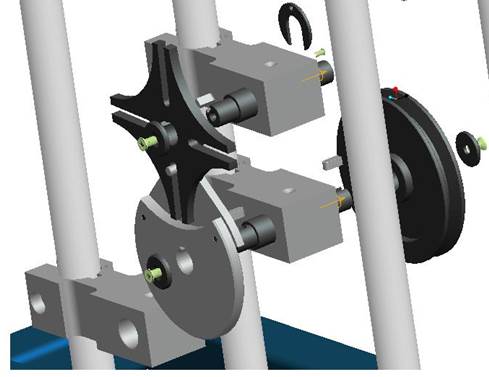 機構說明:槽輪機構動力性能較差,但若將一個導桿機構串聯在槽輪的機構之前,則可改善槽輪機構的動力性能。圖1 槽輪機構