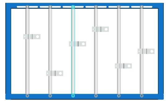 實(shí)驗(yàn)臺(tái)機(jī)架如圖2所示:機(jī)架中有5根鉛垂的活塞桿,它們可沿X軸左右移動(dòng),固定靠六角頭螺釘和蝶型螺母固定。需移動(dòng)時(shí)請(qǐng)先將蝶型螺母松開(kāi),雙手推動(dòng)活塞桿.并盡可能使它保持垂直狀態(tài)。活塞桿上的滑塊可沿Z軸上下移動(dòng),用內(nèi)六角螺釘將滑塊緊定在活塞桿上。(注意:在移動(dòng)立柱或滑塊時(shí)需用直尺或卷尺量出它們的相對(duì)位置再把螺釘擰緊。)