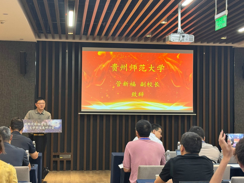 管新福在致辭中介紹了貴州師范大學(xué)的總體情況,對(duì)中國科學(xué)技術(shù)大學(xué)、廈門大學(xué)、貴州大學(xué)等高校的領(lǐng)導(dǎo)和專家長期以來對(duì)貴州師范大學(xué)天文學(xué)科的建設(shè)提供的大力幫助表示感謝,希望通過本次會(huì)議的召開,匯聚各方智慧,共同探討天文學(xué)學(xué)科建設(shè)、本科及研究生人才培養(yǎng)以及前沿科學(xué)研究等熱點(diǎn)問題,促進(jìn)學(xué)科交叉融合,激發(fā)創(chuàng)新思維,為三省區(qū)乃至國家的天文事業(yè)和社會(huì)發(fā)展貢獻(xiàn)力量。