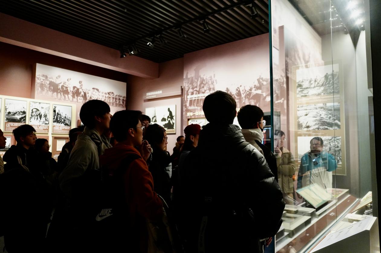 在莊嚴肅穆的中國人民抗日戰爭紀念館,全體黨員集體默哀、敬獻菊花,表達對革命先烈的深切緬懷。隨后,同學們在“歷史永不忘,青春繪和平”主題長卷上留言祈愿,并跟隨講解員參觀各主題展區。珍貴的歷史文物與復原場景,讓大家直觀感受到抗戰的艱辛與偉大,深刻認識到“落后就要挨打”的歷史教訓與“團結就是力量”的精神內核。