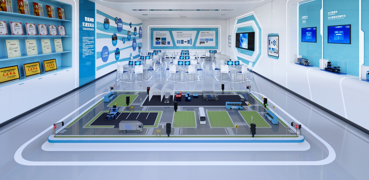 校內實訓基地:針對智能網聯汽車技術崗位職業技能要求,建設有智能網聯汽車技術實訓室、智能座艙虛擬仿真實訓室、智能網聯整車裝調實訓室、輔助系統實訓室和整車故障診斷與維修實訓室等。實訓設備配備智能汽車傳感與感知實訓系統、智能汽車仿真教學軟件、智能汽車傳感器系統、智能汽車裝調標定臺架等實物,提高學生對智能網聯汽車的裝調標定能力,對接職業技能崗位需求。