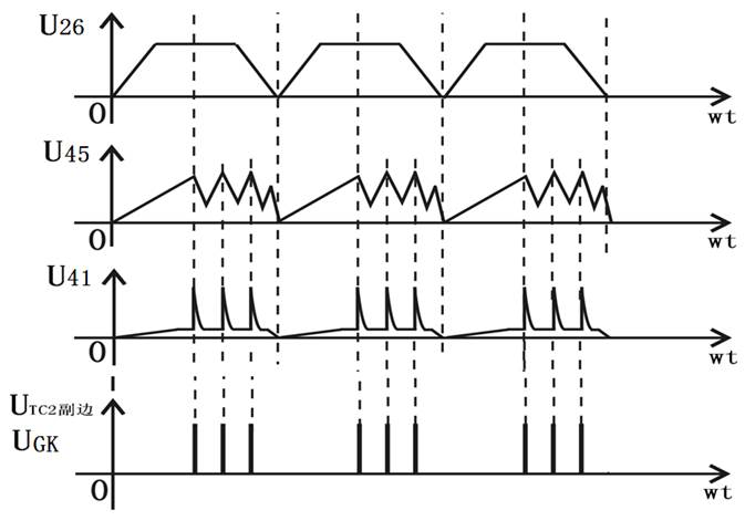 圖3-2 單結(jié)晶體管觸發(fā)電路各點(diǎn)的電壓波形(α=90o)