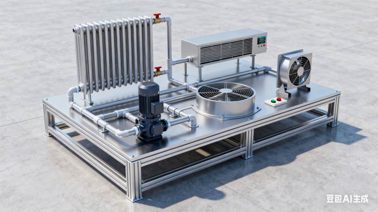 12.1、 裝置采用鋁型材框架底座,臺上安裝有包括鋁塑管、水泵、暖氣片、風機盤管、小型風機 風機開關