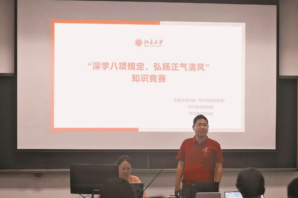 考古文博學院博士生黨支部始終以習近平總書記重要回信精神為遵循,廣泛開展“理論學習+專題研討”、模范宣講與共建交流“三位一體”的黨員學習教育。支部立足學科實際、結合時事熱點,發動全體黨員圍繞“新質生產力+文化遺產保護”、教育強國建設、黨風廉政建設等與學科相關的熱點話題展開交流研討,圍繞中央八項規定精神開展知識競答活動,讓支部黨員在學習理論知識的同時感悟考古青年初心使命。支部邀請學院資深教授、“兩會”文博代表、雷鋒班班長等先鋒模范宣講奮進故事,與浙江省文物考古研究所黨總支、中國國家博物館青年工作者等共建交流,在拓寬學科視野的同時為融入社會主義文化建設大潮做好充分準備。2025年4月,支部前往甘肅,在敦煌與北大考古人杰出代表樊錦詩等共同學習“莫高精神”,在臨洮實地學習“時代楷模”柴生芳事跡、探訪史前文化遺址,追溯“洮水流珠”凝結的文明密碼,感悟“此木生芳”蘊藏的初心力量。