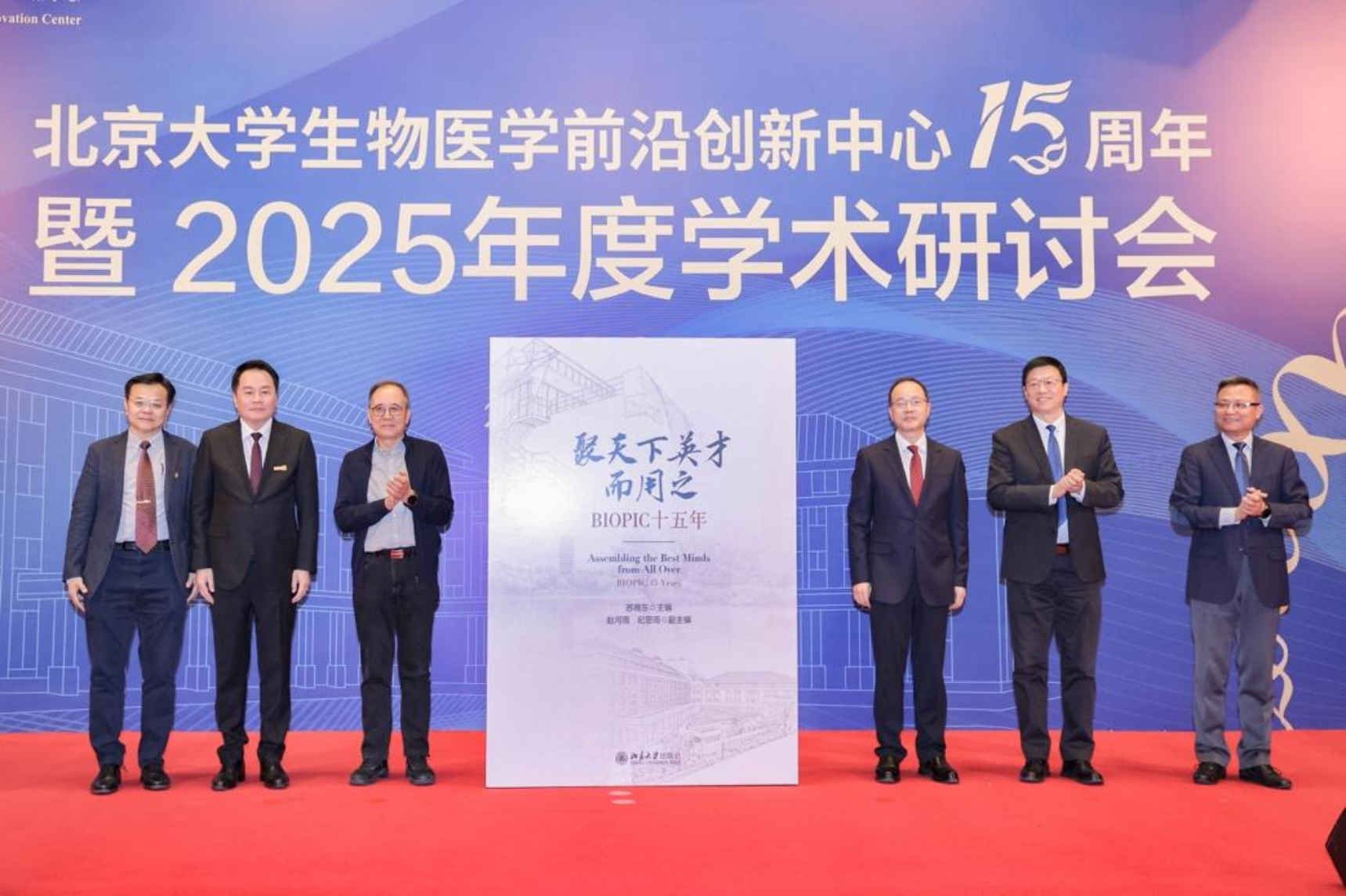 何光彩、林建華、謝曉亮、張澤民、蘇曉東、夏紅衛(wèi)共同為紀(jì)念文集《聚天下英才而用之——BIOPIC十五年》揭幕。該書由蘇曉東主編,BIOPIC教職員工、海內(nèi)外校友及相關(guān)代表共同撰寫。