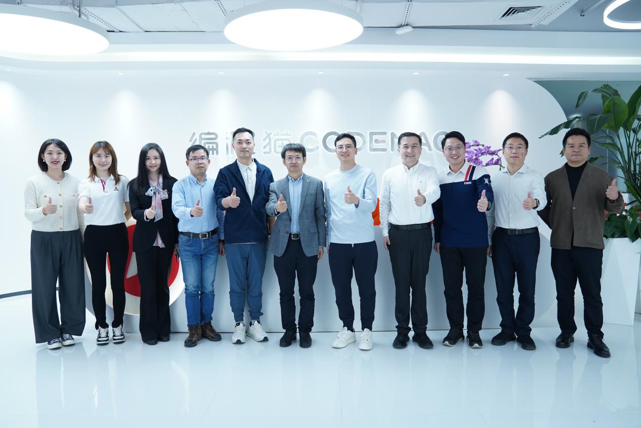 12月13日上午,調研團到訪深圳市越疆科技股份有限公司深圳總部。越疆科技副總經理、全球教育負責人王星,首席科學家郎需林、國內教育事業部副總經理唐海峰等核心團隊成員全程陪同接待。調研團在越疆科技智能展廳,沉浸式體驗了從協作機械臂到全尺寸具身智能人形機器人的技術迭代成果。王星結合展品系統介紹了越疆科技的發展歷程,郎需林重點解讀了公司在具身智能領域的核心突破,唐海峰提出了具身智能產學研合作設想。雙方圍繞具身智能技術發展瓶頸與教育應用前景展開熱烈交流。