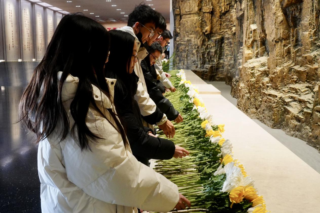 在莊嚴肅穆的中國人民抗日戰爭紀念館,全體黨員集體默哀、敬獻菊花,表達對革命先烈的深切緬懷。隨后,同學們在“歷史永不忘,青春繪和平”主題長卷上留言祈愿,并跟隨講解員參觀各主題展區。珍貴的歷史文物與復原場景,讓大家直觀感受到抗戰的艱辛與偉大,深刻認識到“落后就要挨打”的歷史教訓與“團結就是力量”的精神內核。