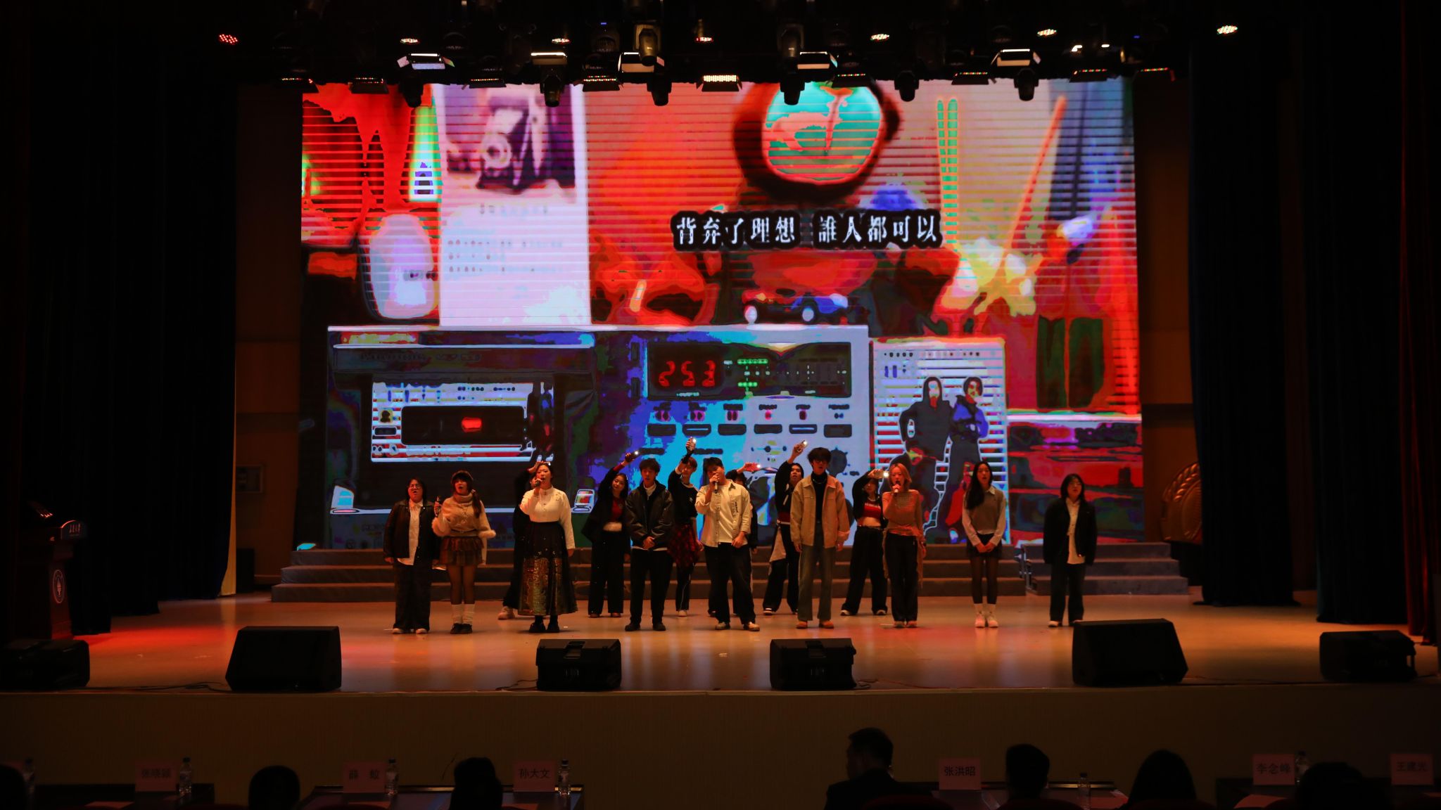 在文藝表演環節,配音秀《考試傳》用“聲音魔方”復刻數學考場“名場面”;紅色話劇《破曉》以沉浸式演繹帶觀眾穿越崢嶸歲月;民族舞《同心共筑中國夢》以翩躚舞姿詮釋民族團結,將“小我”融入“大我”;歌曲串燒《冷焰赴長空》用激昂旋律唱出“請黨放心、強國有我”的青春誓言。