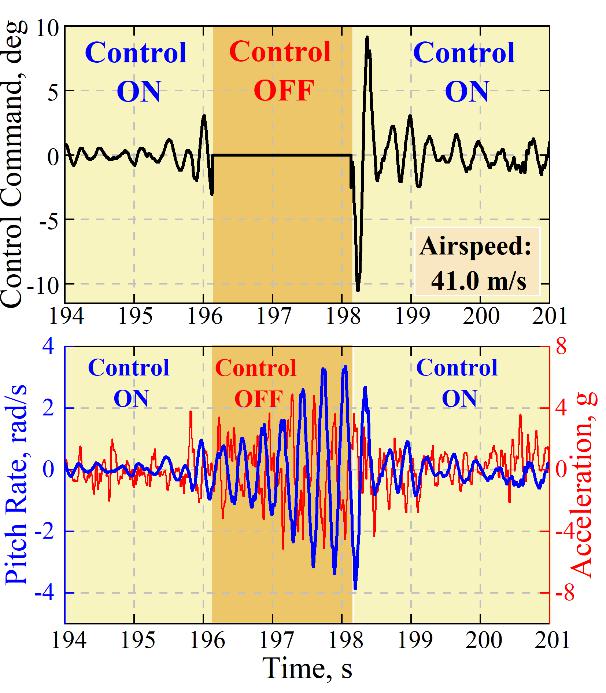 剛-彈耦合顫振抑制飛行試驗實測數據
