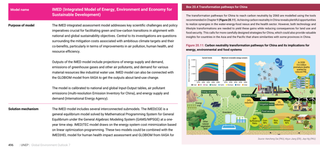 IMED模型入選GEO-7全球代表性IAM模型(左),中國雙碳目標轉型路徑相關研究成果納入典型國家案例(右)