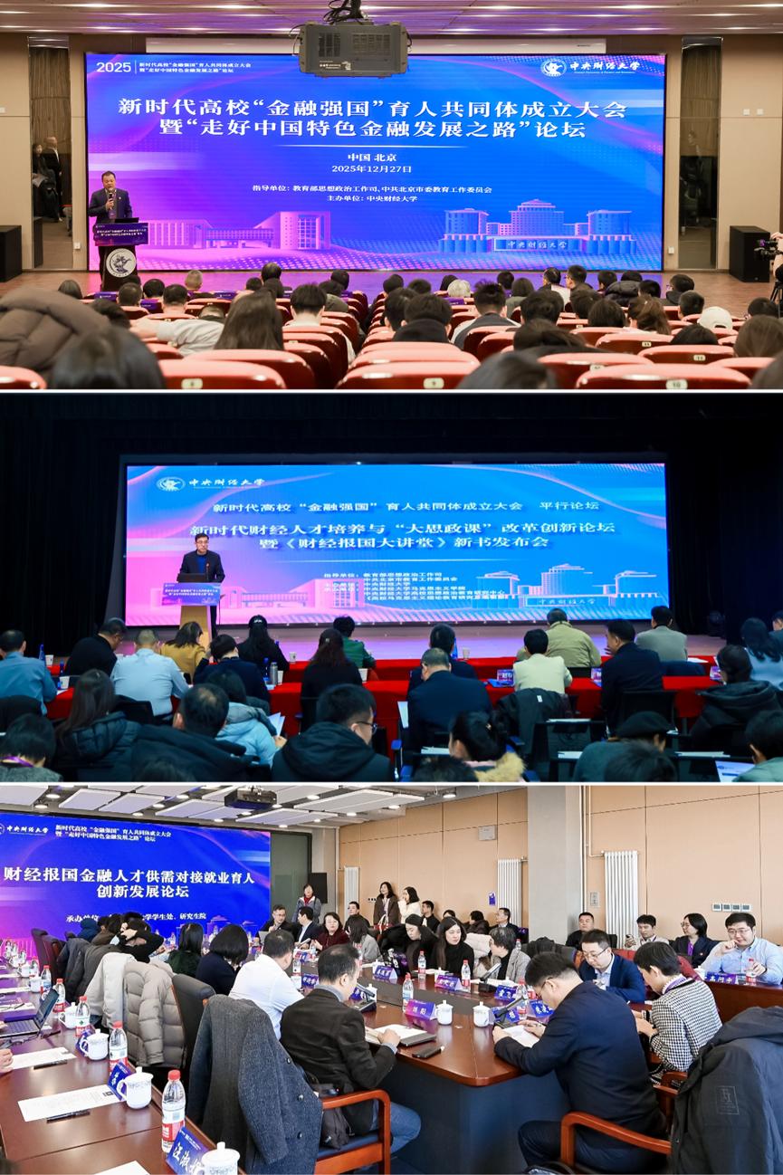 2025-12-29 07:12為深入學習貫徹黨的二十大及二十屆歷次全會精神,全面貫徹落實習近平總書記關于教育和金融工作的重要論述,貫徹落實全國教育大會精神和《教育強國建設規劃綱要(2024-2035年)》部署,高質量推進新時代立德樹人工程實施,中央財經大學聯合140余所高校,60余家骨干企業、行業組織、行業媒體聯合成立新時代高校“金融強國”育人共同體。12月27日,新時代高校“金融強國”育人共同體成立大會暨“走好中國特色金融發展之路”論壇在京召開。